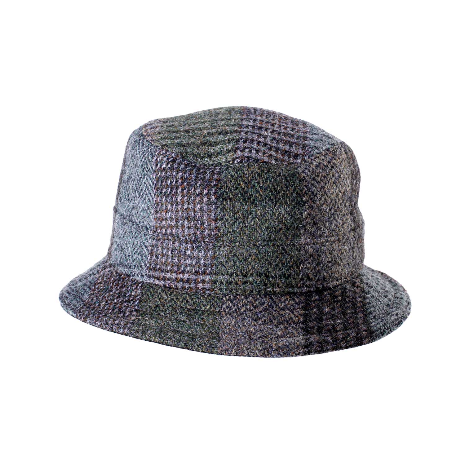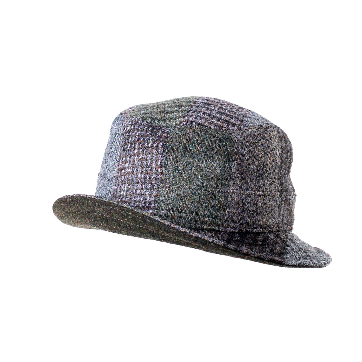Hyrdehat i klassisk solid harristweed stof, i patchwork vævet design.